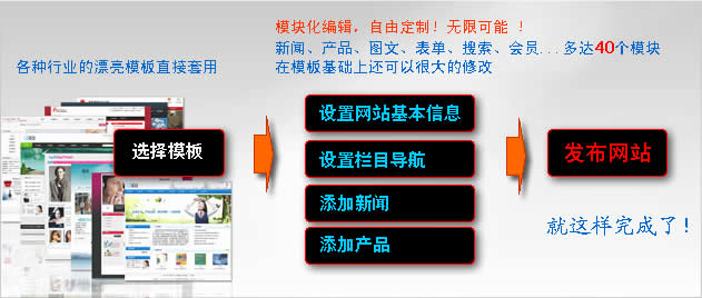 上面兩步做好之后最重要的就是如何規劃好自己的網站做個好的網站。如果懂Dreamweaver,Frontpage等專用軟件的可以用這些軟件來制作,不懂的想節省成本的可以用自助建站建站寶盒來做的!至少可以節省上千塊錢的成本費。基本網站結構已經設計好直接添加圖片即可!