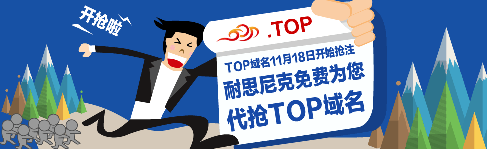 Top域名是新推出的國際頂級域名,相較于.com域名,具有更好的品牌資源,由于剛開放注冊,更容易注冊到有意義、簡短、易記的域名。Top域名英文意譯為“高端”“頂級”“高級”“首席”“頂端”等正能量意思,中文音譯為“突破”,是一個旨在創造一個“高端定位,突破自我”的域名體系。下面筆者以任意一家.top域名頂級注冊商作為案例,教大家一步一步注冊.top域名。