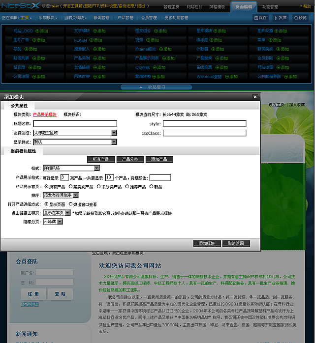 可以方便地在網頁中插入插件、拖放定位和改變插件尺寸,靈活設置插件邊框風格和插件顯示參數,靈活設置網頁背景,網頁排版完全可視化,所見即所得,讓網站制作如同搭積木般便捷易玩;